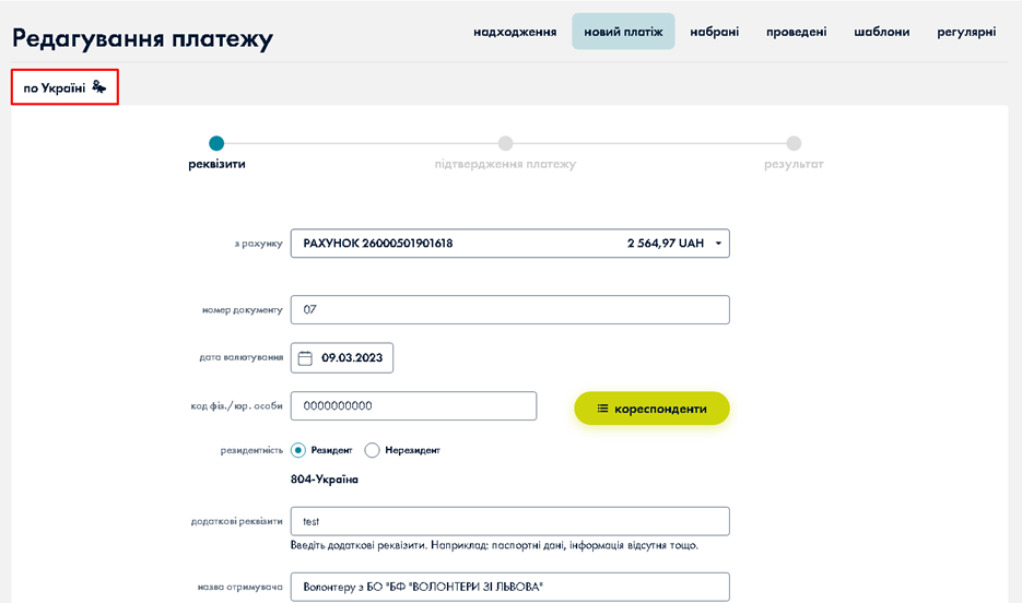 14.2.1. Додаткові параметри «Фактичний платник», «Фактичний отримувач»