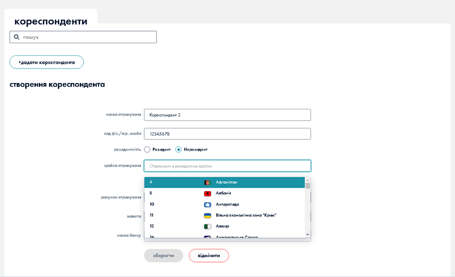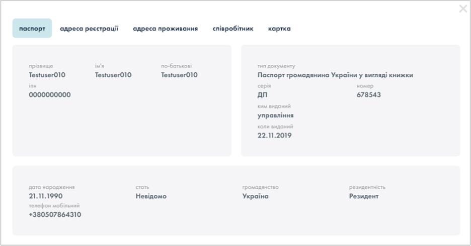 Значення, які є вже заповненими у відповідних полях (рядках). Наприклад: поле "Країна клієнта" по-замовчуванню є Україна, а "Вид документа" – паспорт. |