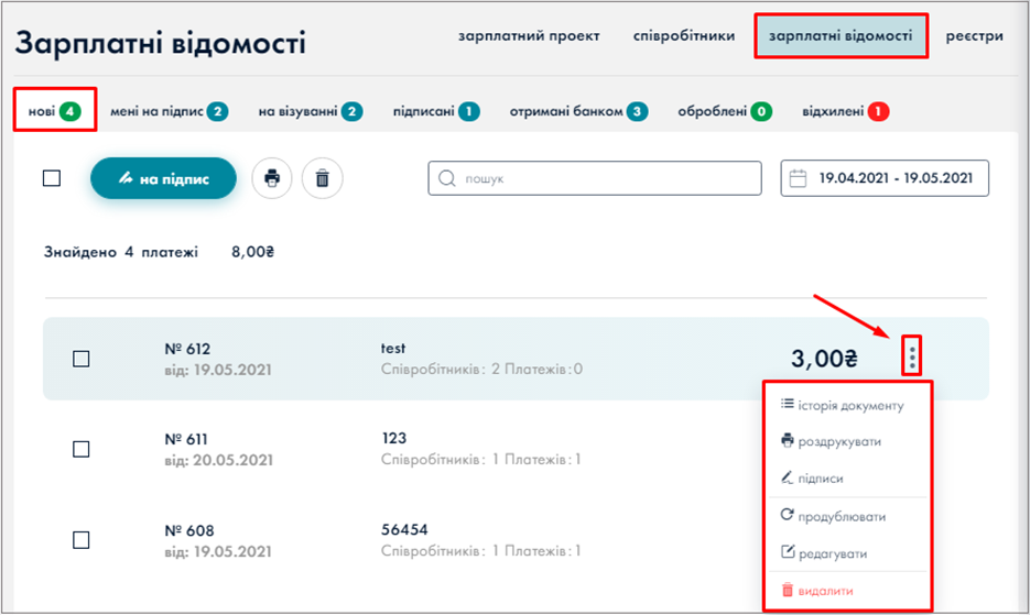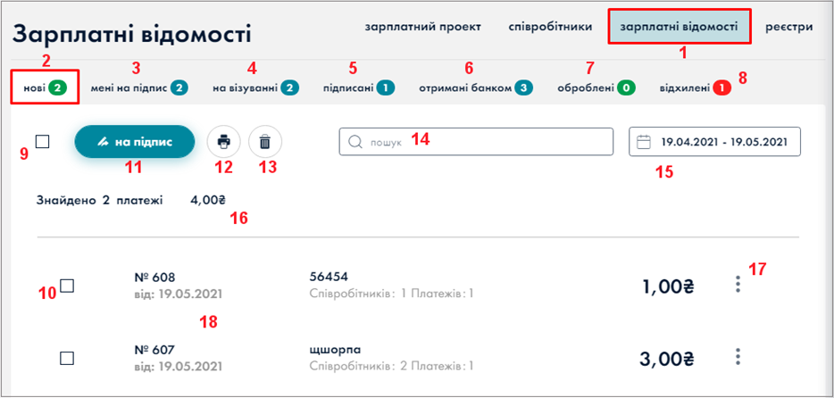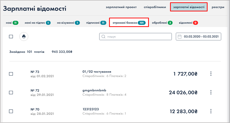 11.1. Перегляд оборотів, експорт даних та формування виписки по рахунку